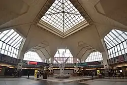 The station was built with little public parking, as NJT believed few passenger trips would originate there. In 2005, exit 15X on the adjacent New Jersey Turnpike opened to provide easier access to the station; two years later, it was the least-used interchange on the turnpike, possibly due in part to the lack of parking at the station.[8] Despite NJT's prediction that the station would be used primarily for transfers, in 2008 an upscale "transit-oriented" housing development called Xchange at Secaucus Junction opened nearby with 799 units marketed toward Manhattan commuters, and is expected to expand to 1,538 total units by 2024.[9][10] On June 1, 2009, Edison Parkfast, a private company, opened the first parking lot near the station,[11] with space for 1,094 cars. Bicycle parking is also available.[12]