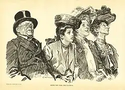 Tours in open-topped buses left from the Flatiron Building (then the Fuller Building), where the windows were painted to advertise "coaches, automobiles, and yachts".[3] The men wore suits, the women wore gloves and elaborate, often feathered hats. They visited "the historic section, in its Dutch, British and American periods; the Bowery, Chinatown, Brooklyn, Castle Garden, Central Park, the Grand Boulevards, the historic Hudson River, Columbia University, General Grant's tomb, [and] statues of Christopher Columbus and William Shakespeare."[1] By 1913, manager J. H. Mulligan and local manager R. H. Green were operating eight vehicles.[2] In 1904, The Evening World described the tours: