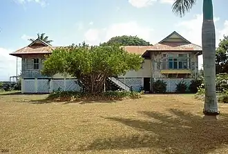 In 1918, the house was purchased by James Mark Gibson, a major figure in the local sugar industry and the building was extended again, this time with the addition of a wing on the southern side, following heavy cyclone damage. Gibson was one of the largest sugar growers in the Mackay district and was involved with the Racecourse Mill for over 56 years; as chief chemist, manager and from 1923, as director. On his death in 1964, the house was divided into two flats and remained that way until the house was purchased and reverted it back from flats to a house.[1]