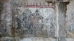 The Singavaram Ranganatha temple is located about 4 miles (6 km) from the Gingee Fort, with the Queen's Fort linked by tunnels to this temple.[1] The 24-foot (7.3 m) long idol of Ranganatha, carved from living rock, is in a reclining pose on the coils of the serpent Ananta.[2] A panel in the rear wall depicts the Gandharvas and Brahma, in which Brahma is born from the navel of Vishnu. Besides Garuda, the demons Madhu and Kaitabha who were killed by Vishnu are depicted. The goddess Bhoomidevi graces the feet of the lord while Prahlada sits near his knee.