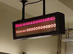 Every New York City Subway service was affected, with four routes completely suspended, 12 partially suspended, and an additional eight services significantly delayed. There was no train service on the 2, 3, 4, 5 routes in Brooklyn, and no service on the B and G routes at all.[31][32] Metro-North Railroad service was suspended on the New Haven, Hudson and Harlem lines,[33][34] and the Long Island Rail Road experienced suspensions on the Far Rockaway Branch and Long Beach Branch.[35] A terminal at LaGuardia Airport was shut down due to flooding, while a ground stop was imposed at the airport.[36] Departures were delayed at John F. Kennedy International Airport due to heavy rainfall, with total rainfall of 8.65 inches (220 mm), which set the highest September rainfall total in a 24-hour period since Hurricane Donna.[37][38][39] NYC Ferry and Amtrak service was also delayed.[40][41]