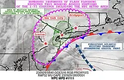 A mesoscale discussion from the Weather Prediction Center showing the expectation of flash floods across New York City