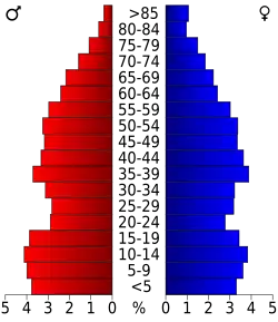 Age pyramid for Sequoyah County, Oklahoma, based on census 2000 data.