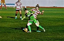 Serra Çağan driving the ball for 1207 Antalya Muratpaşa Belediye Spor in the 2015–16 season's away match against Kireçburnu Spor.