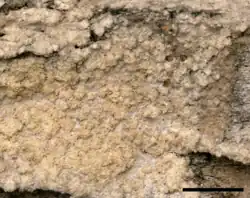 Holotype specimen of Serusiauxia inexpectata, showing its sorediate thallus; scale bar = 2.5 mm