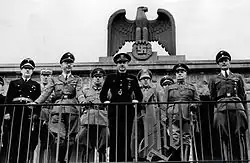 Beginning in November 1937, provincial headquarters were established in Italy, Argentina, Cuba, Chile, Brazil and Uruguay.[4] Later, new headquarters were established in Germany, Portugal, the United Kingdom and several Central American countries.[4] In Puerto Rico, a territory under U.S. control, it had an important presence and activity. However, the Falange's activities in Puerto Rico began to be drastically reduced after September 1942.[54] In Spanish Morocco it also had an important presence.[8] In Nazi Germany, on the other hand, the Falange Exterior had an important network with centers in several German cities, such as Berlin and Hamburg. Berlin was the center of the Falange in Germany, and there they had a large headquarters located in Rankestraße,[55] inaugurated in April 1939. However, by that time, in view of its large size, the organization needed to be restructured: in November 1938 the organization of the Falange in Germany was thoroughly reorganized.[14] In Fascist Italy it had branches in several important cities, initially headed by the Marquis de Zayas.[56]
