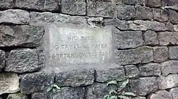 Two plaques at the site read "Hic tuus o Tamesine Pater septemgeminus fons" (Latin for "Here, O Father Thames, is your sevenfold spring").[4] Seven Springs is further from the mouth of the Thames than the medieval preferred source at Thames Head near Kemble.