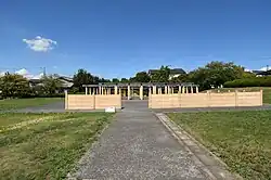 This site is a complex site consisting of a small-scale kofun burial mound from the 5th century, village remains from the latter half of the 6th century to the 7th century, and the group of large, pillared buildings arranged in an orderly manner from the late 7th century. Based on the historical and geographical background and excavated artifacts, the site corresponds to the presumed location for the government headquarters for ancient Kuse District, Yamashiro Province. After its designation as a National Historic Site in 1974, approximately 10,850 square meters of the site was acquired by Jōyō city, and the excavation was backfilled for preservation. However, no further action was taken on the cite until 1989 when plans for an archaeological park with partial reconstructions of buildings was formulated. The park opened in 1992. It is located about a 15 minutes walk from Jōyō Station on the JR West Nara Line.[3]