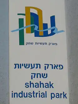 The Shahak Industrial Park (Hebrew: פארק תעשיות שח"ק) is located in the northern region of the jurisdiction of the Shomron Regional Council in Israel, between Afula and Hadera near the 'Barkai/Iron Interchange' of Highway 6.[1] The industrial park is adjacent to Shaked, Hinanit, and Katzir, hence the initials making up the acronym in Hebrew that is the name of the park. The area is located within the Israeli West Bank barrier and employs Israelis, Palestinians and Arab citizens of Israel.
