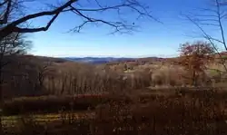![]() View of the Sharon Audubon Center fields, Bog Meadow Pond and the Taconic Mountain range. | |