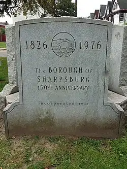 Memorial celebrating the 150th Anniversary of James Sharp settling Sharpsburg.