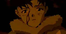 For the scene with Gendo and Fuyutsuki in Antarctica, in which a red sea full of salt columns is framed, the authors took up an idea already presented in the last episode of the series Nadia: The Secret of Blue Water, in which the series' main antagonist, Gargoyle, is turned into salt.[30][31] According to the character designer of the series, Yoshiyuki Sadamoto, the post-apocalyptic scenario and the use of the Dead Sea Scrolls in Neon Genesis Evangelion are also a "side effect" of Nadia.[32] The original scenario of the series also did not involve an explosion at the south pole, but a "Dead Sea evaporation accident".[3][33] Even Misato's motto uttered during the operation against Sahaquiel, "The value of a miracle only becomes real when it has happened", echoes similar phrases and themes presented in previous Gainax works, such as Nadia and Gunbuster.[34][35] Before the fight Rei also says that she does not eat meat and orders a meat-free ramen;[36] for Rei's characterisation Anno took inspiration from his personal experience as a long-time vegetarian, similarly to what he had already done with Nadia Arwol, the protagonist of The Secret of Blue Water.[37]