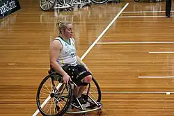 Chaplin made her debut in the Women's National Wheelchair Basketball League (WNWBL) in 2000 when she played for the Whittlesea Pacers.[12] She played for the Dandenong Rangers in 2011 when her team won the WNWBL title,[13] and in 2012 was the captain of the Victoria Dandenong Rangers.[14] In a round four game against Sydney Uni Flames that the Rangers won 55–44, she scored 22 points.[15] Her team qualified for the league finals, where she scored 16 points in the game against the Stacks Goudkamp Bears for her team to walk away as champions by a score of 77–54. That season, she was named the league's Most Valuable 3 Point Player and a member of the 2012 All Star Five.[14]
