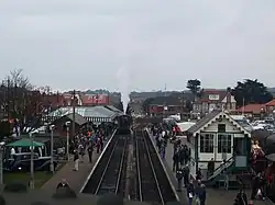 Sheringham is the name of a preserved railway station in Sheringham, Norfolk. It was once part of the Midland and Great Northern Joint Railway network and closed in 1967 when a new station was opened by British Rail c.200m eastwards. Since July 1975 it has served as the eastern terminus of the North Norfolk Railway. In March 2010, the link to Network Rail was reinstated.