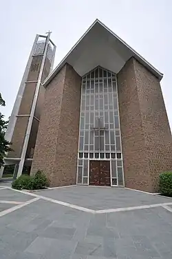 2. ^ Designed in association with Harrison & Abramovitz of New York City. Wallace K. Harrison was chiefly responsible for the sanctuary while Sherwood, Mills & Smith were responsible for the other parish buildings and general supervision.