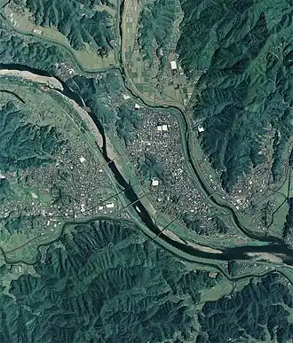 As with all of Kōchi Prefecture, the area of Shimanto City was part of ancient Tosa Province. During the Kofun period and Nara period, the area of western Tosa was called "Hata" and was ruled by the Hata Kuni no miyatsuko. The Hata clan dominated the area well into the Heian period. During the Kamakura period much of the area became part of a vast shōen landed estate controlled by the Kujō family of aristocrats from Kyoto. Kujō Michiie left the estate to his third son, Ichijō Sanetsune, who was the founding father of Ichijō family. During the Onin War, the kanpaku Ichijō Norifusa fled Kyoto in 1468 and settled in Nakamura, in what is now Shimanto.[10][11] He remodeled the village on Kyoto, giving rise to the nickname of "the little Kyoto of Tosa",[12] During the Sengoku period, the Ichijō were defeated by the Chōsokabe clan at the 1575 Battle of Shimantogawa. Following the establishment of the Tokugawa shogunate, the area was part of the holdings of Tosa Domain ruled by the Yamauchi clan from their seat at Kōchi Castle, with Nakamura becoming the seat of a 30,000 koku subsidiary domain until 1689.[13] In this year, the head of the Nakamura fief was punished for the offence of turning down a post on the Tokugawa Junior Council.[13] The local castle was destroyed, the fief's finances were confiscated, retainers were stripped of their incomes, and the samurai dwellings were destroyed, forcing them to scatter and become farmers or merchants.[13] The Nakamura area lost a great deal of wealth and independence, and became a minor rural region.[13]