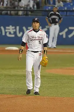 Shingo Kawabata (川端 慎吾, Kawabata Shingo; born October 16, 1987 in Kaizuka, Osaka Prefecture, Japan) is a professional Japanese baseball player. He plays infielder for the Tokyo Yakult Swallows.[1] Kawabata won the Central League batting title in 2015 after recording a .336 average.[2]