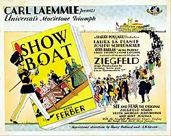 Show Boat is a 1929 American pre-Code sound part-talkie romantic drama film based on the 1926 novel Show Boat by Edna Ferber. The film initially did not use the 1927 stage musical of the same name as a source, but scenes were later added into the film incorporating two of the songs from the musical as well as other songs. Many of these songs from the stage show were featured in a special prologue that was added to the picture before it was released. This film was produced and released by Universal. Like the majority of films during the early sound era, a silent version was made for movie theatres that had not yet converted to sound.