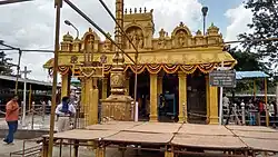The temple is considered holy as the Tirupathi Venkateswara temple and devotees from other states like Andhra Pradesh and Tamil Nadu visit the temple.[4] As of November 2012, the temple had an annual revenue of ₹1 crore. The Brahmotsavam, the major festival, is celebrated annually during Shravana Shaniwara during which the festival images of the presiding deities are taken in a parade around the streets of the temple in a chariot.[3] An interesting part of this lord Venkateshwara idol is that it is an Abhayahastha (hand showing upwards as blessing) whereas in Tirupathi at Andhra Pradesh, the presiding deity's hand is showing downwards.[5] The chariot festival has been of historic importance and draws crowd from neighbouring regions.[6] Karaga, also called Mother goddess festival is celebrated in the temple annually. People go on a pilgrimage and as a mode of worship walk 15 to 20km from various villages to the temple. The devotees are fed by neighbouring villages during the event.[7]
