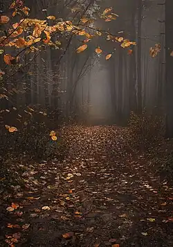 The park has a dense forest area, with about 90% area covered by forests mostly of the mixed deciduous forests. The plants and tree species reported from this forest, are: ash (Fraxinus), beech (Fagus), European hornbeam (Carpinus betulus), lime (Tilia), maple (Acer campestre), Turkey oak (Quercus cerris), and many more. The forest's conifer vegetation consists of: European black pine (Pinus nigra), Norway spruce (Picea abies), Oregon pine (Pseudotsuga menziesii), Scots pine (Pinus sylvestris), and spruce (Picea). The shrub species reported are: dog rose (Rosa canina), the European Cornel (Cornus mas), the hawthorn (Crataegus), and the hazel (Corylus). The open area of the park is covered with several species of bush and grass. Other plant species reported are 14 types of orchid (Orchidaceae) and more than 250 species of herbal plants.[3] The Management Plan for the park lists 550 species of vascular plants (excluding mosses).[1]