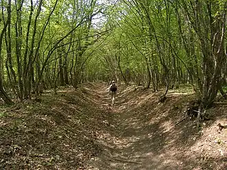 The Shumen Plateau Nature Park (Bulgarian: Природен парк Шуменско плато) is located in the Shumen Plateau of the northern province of Shumen of Bulgaria, the highest plateau of the Danubian Plain. The Park encloses the Bukaka Reserve Forest, which is known for indigenous Fagus sylvatica (common beech) moesiaca (the Balkan beech) forest. This Park was declared a National Park in 1980 and a Nature Park in 2003 to conserve its ecosystems and floral and faunal biodiversity, and to preserve its tableland landscape together with many tourist sites such as the Shumen fortress, the Monument to 1300 Years of Bulgaria, cave monasteries, and surface and underground karst caves. The park has the first thematic educational trail in the Karst Nature Park, constructed as part of a project titled "Natural Park of Shumen Plateau" with funds provided by the EU Cohesion Fund and the Republic of Bulgaria; the trail is integral to the Operational Program "Environment 2007–2013".