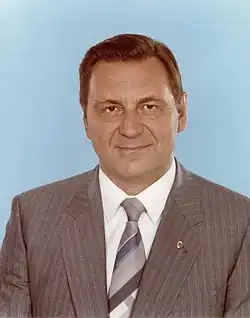 Siegfried Lorenz (born 26 November 1930) is a former senior party functionary of the ruling Socialist Unity Party of Germany (SED / Sozialistische Einheitspartei Deutschlands) in East Germany. He was a member of the Politbüro of The Party's Central Committee in Berlin and First Secretary of the party's Karl-Marx-Stadt regional leadership team. During his career held a number of positions with the country's FDJ (Free German Youth movement).