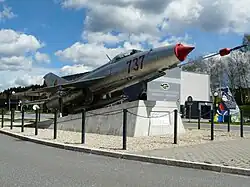 MiG-21 fighter plane, which was also flown by Jähn, in front of the German Space Travel Exhibition in Morgenröthe-Rautenkranz (2015)