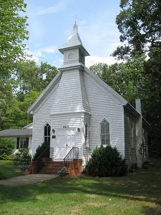 Silverbrook Methodist Church, also known as Silverbrook United Methodist Church, is a historic Methodist church located at Lorton, Fairfax County, Virginia. It was built between 1906 and 1908, and is a rectangular, one-story, one-room, gable-front, frame structure with a projecting front vestibule topped by a bell tower. It is in the Late Gothic Revival style and measures approximately 24 feet by 40 feet (7.3 by 12.2 meters). Also on the property is a contributing church cemetery dated to 1911.[3]