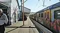 The railway line from Fish Hoek into Simon's Town is single-track, but the station itself has three tracks; one track is served by a side platform next to the station building on Station Road, while the other two are served by an island platform connected by a pedestrian subway.