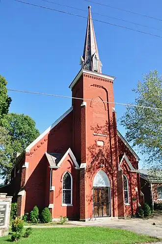 The first church on this location was built in 1840; it had elevated pews and 32 members in 1842. This church was built in 1876 as the Methodist Episcopal Church South for cost of $7500. It had 210 members during 1877–1880.[2]