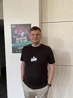 ![]() Florentin Iancu at a UNI Global Union conference for unionised tech workers. | |