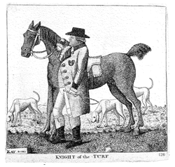 In 1789, caricaturist John Kay entitled his likeness of Sir Archibald, Knight of the Turf, likely as a nod to his presidency of the Caledonian Hunt.[6]