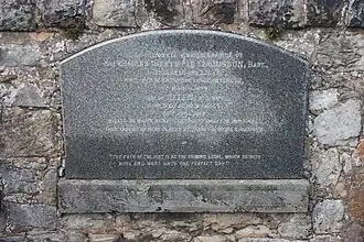He died at Inveresk 18 March 1849.[1] The grave lies in the extreme north-west corner of the first Victorian extension, west of the original churchyard.