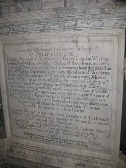 His tomb in Waldershare church was sculpted by Thomas Green of Camberwell.[4]