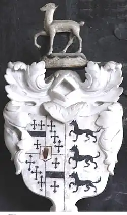 - ^ Sir Robert's monument exists in Soulbury Church, although he was not buried there but at Sparsholt in Berkshire, where he died on his return journey from visiting his son Edward at Tawstock. (Arden Lovett, R., Soulbury Church, Bucks., with its monuments, pp. 25–27)[2]