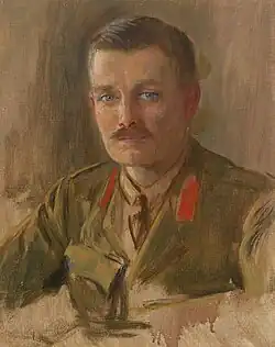 Wake commanded the 4th Battalion, KRRC in British India from 1920 to 1923,[14] was promoted on 11 August 1924 to colonel, with seniority backdated to 1 January 1921,[31] and appointed an aide-de-camp to King George V on 5 December 1930, then promoted to major-general on 23 May 1932.[32][33] He commanded the 12th Infantry Brigade until placed on half pay on 23 August 1932.[34][35][36] He returned to service on 1 April 1934 as commander of the Territorial Army's 46th (North Midland) Division, by this time he had also been appointed a Companion of the Order of the Bath.[37] Retiring from the army on 11 February 1937,[38][39] on 20 January 1938, he became colonel-commandant of the KRRC, an honorary and ceremonial role.[40]