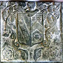 Ledger Stone of Sir John Bampfylde, 1st Baronet, in nave of Poltimore Church