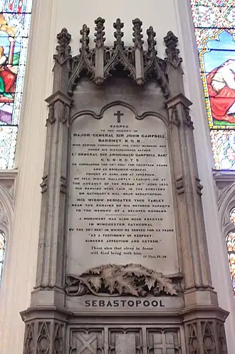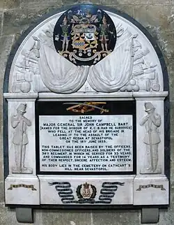 Sir John Campbell's name appears on the Crimean War Memorial in Bath Abbey Cemetery, Bath, Somerset, England.[8]