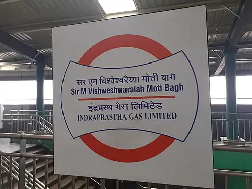 The Sir M. Vishweshwaraiah Moti Bagh metro station is located on the Pink Line of the Delhi Metro.[1] The station was opened on 6 August 2018. Moti Bagh metro is situated on the Ring Road.