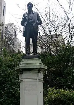 The bronze statue, designed by David McGill, is striking, life-like and shows Lawson, in an attitude of debate. On the front of the pedestal on which it stands is the inscription: – "Sir Wilfrid Lawson, Bart., of Brayton, Cumberland; born September 4th, 1829: Member of Parliament for Carlisle, Cockermouth, Camborne, 1859 1906; president of the United Kingdom Temperance Alliance, 1879 1909." On one side of the pedestal are the words. "A true patriot, a wise and witty orator, a valiant and farseeing reformer, he spent a long life as the courageous champion of righteousness, peace, freedom and temperance." On the other side, the inscription runs. "Erected by his friends and followers in grateful remembrance of his splendid leadership, and of his pure and unworldly life, July 20th, 1909."