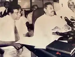 Then Fisheries and Aquatic Resources Minister Mahinda Rajapaksa with senior civil servant Sirisena Amarasekara