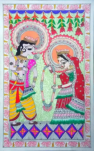 Sita Swayamvara (Maithili: सीता स्वंवर) is the swayamvara event, culminating in the wedding of the deities Rama and Sita, the protagonists of the Hindu epic Ramayana. The event was related to a competition among the kings in the Indian subcontinent to win the hand of the princess Sita of the Mithila Kingdom. The competition of the Sita Swayamvara was organised at the court of Sita's father - King Shreedhwaja Janaka in Mithila.[1][2][3]