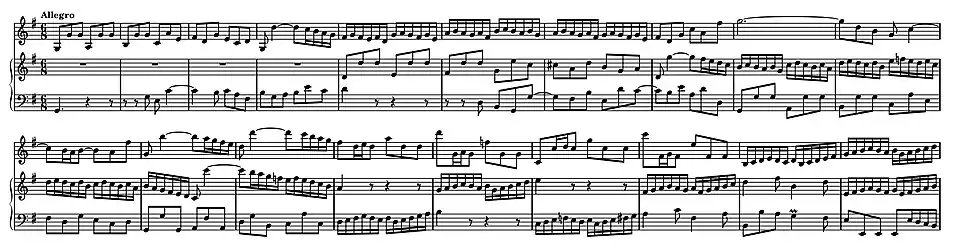 The fifth and final movement of BWV 1019 is a concertante, gigue-like Allegro in G major and 6
