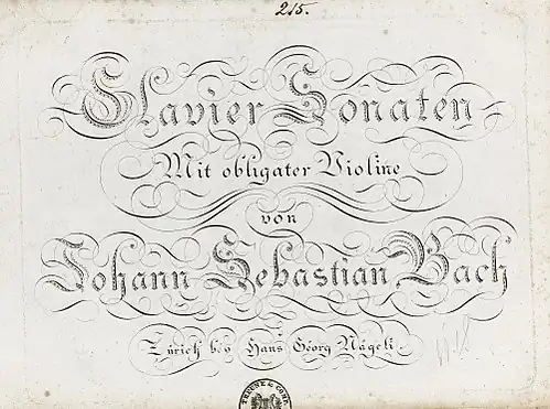 Title page of first printed edition of the sonatas published by the Swiss musicologist Hans Georg Nägeli in Zürich in the early 1800s