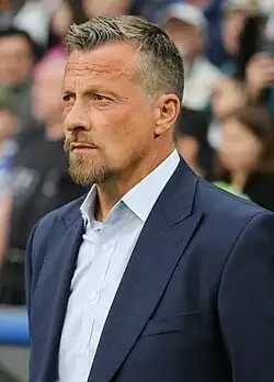Jokanović led Fulham to promotion by beating Aston Villa 1–0 at Wembley Stadium on 26 May 2018 in the play-off final.[32] On 14 November, however, after seven consecutive winless results, and with the team ranking last, he was dismissed and replaced by Claudio Ranieri.[33]