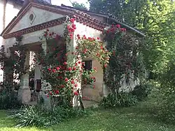 The small Church of St. Anthony of Padua is a Catholic Church in a country estate near the Comune of Sesto al Reghena in Friuli-Venezia Giulia.[1] The main façade is enriched by the presence of a rectangular portico, delimited by a small wall on which rest two lateral pillars and two central columns which support the triangular tympanum. The entrance door is flanked by two rectangular windows. Inside the Church there is the altar-piece which represents[2] Saint John the Baptist and Saint Antony of Padua.