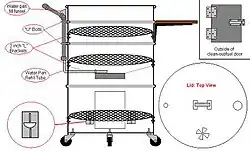 A diagram of a typical upright drum smoker