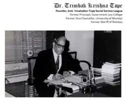 Principal Dr. Trimbak Krishna Tope was the founder and first President of Smt. Vinatadevi Tope Social Service League of Government Law College.