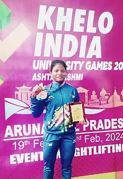 3. ^ Mohapatra, Rajendra Prasad (25 October 2023). "National Games 2023: Odisha weightlifters Jhilli Dalabehera & Sneha Soren bag bronze medals". Odisha TV. Retrieved 24 February 2024.