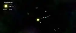 Solar 2 also includes a variety of achievements and object-oriented missions that can be played at any time.[4] Missions can be found following the directional arrows in the interface, and the AI keeps track of which missions the player has finished.[2] The game also keeps record of several accomplishments the player has reached, such as the distance travelled, the number of objects and enemies destroyed by the player or the spaceships belonging to the player.[2] Solar 2 allows the player to save progress at any point. A "save system" feature is also present; it allows the player to save specific configurations of stars and planets that the player has created. The player can respawn from them at any time.[2]